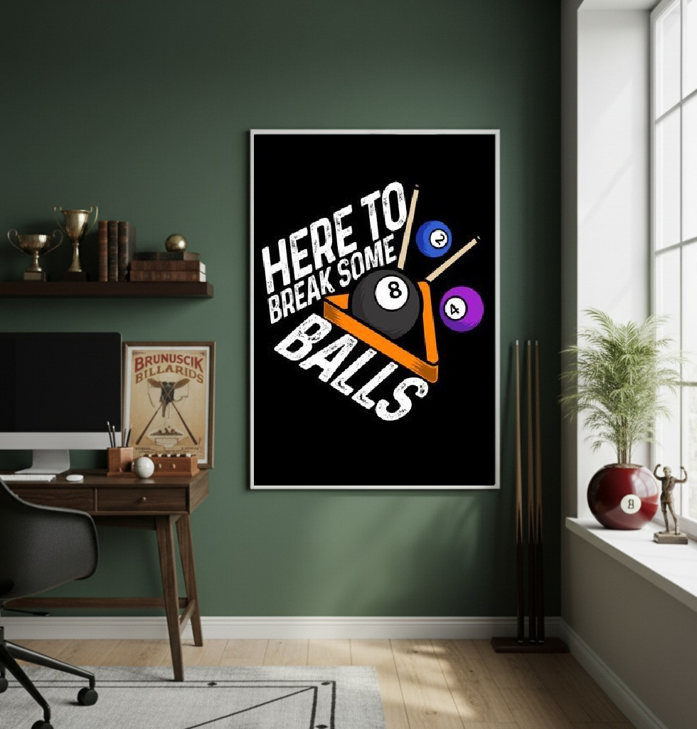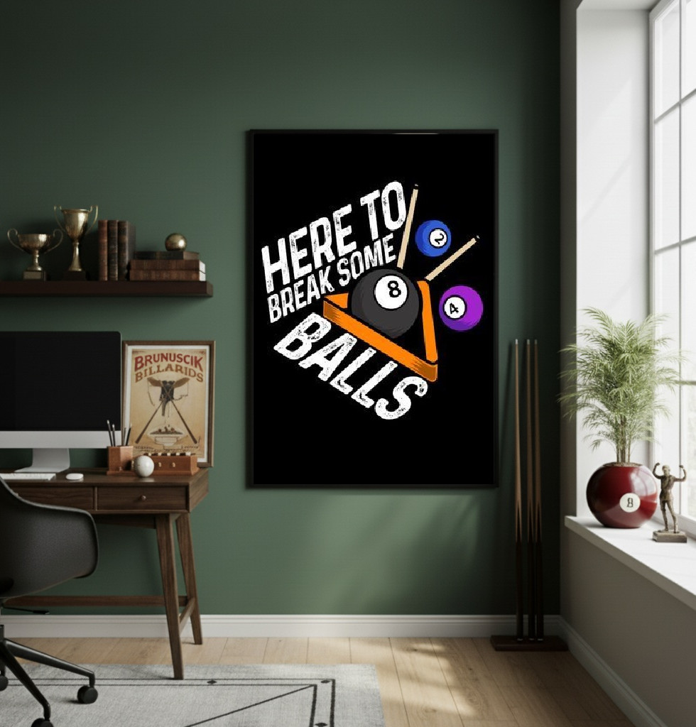 Este quadro decorativo possui um design gráfico forte e moderno, ideal para entusiastas de sinuca ou bilhar. A tipografia ousada, combinada com o contraste entre o fundo preto e as cores vibrantes das bolas, cria uma peça de destaque imediato. É perfeito para decorar áreas de lazer, escritórios com temática esportiva ou ambientes de convívio social descontraídos. A frase de efeito adiciona humor e personalidade, tornando-o um excelente presente para jogadores competitivos. Sua dimensão vertical valoriza a parede, preenchendo espaços com atitude e estilo.
